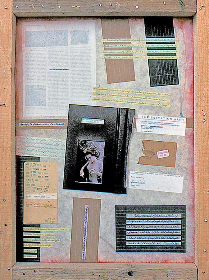 Once again I invoke the Tunnel document. The book form freed Rx from the complexity of their large collages, allowing the distribution of the narrative to be drawn out over the course of numerous smaller, more monumental compositions, much in the way printmakers had examined broader themes over the course of multi-edition print cycles or suites. Over the course of numerous mail art exchanges with Parc Ave. Holdings, Rx began finding their way with regard to the continually shifting and growing conceptual complexity the forces of collaboration and improvisation wrought on their prior, relatively hermetic creative process. Packages and documents were exchanged, books were made; ideas roiled madly! This changing perspective led Rx into a series of works, the first of which was “Tunnel” – the mixed media painting, which gave rise to the Tunnel book, which was at its root, a documentation of the painting’s process, which began as a transformation of a 1987 painting entitled “Death of a Virgin”. This nine foot long triptych had come to embody all the contrivance of their early work, and in 1999 they undertook its de-painting and reassignment, if you will, as a part of the process of their conscious evolution toward finding more metaphysical approaches to narrative, and in developing a more monumental compositional style. The work was stripped of paint and reworked compositionally around the gestural physicality of that initial act of defacement, while growing its narrative in the process of the sorting and application of the collage elements. After being exhorted to document this process by Parc Ave. Holdings, Rx began work on the Tunnel book, which they initially expected to be a document of 10-20 pages, however, coming on the heels of a number of other book form collages engendered by their exchanges, the book soon became an intensive document that grew to over 200 pages, and may be rightly said to be the embodiment of Rx’s entire transformation of style and approach. Each page its own simple, monumental composition, each feeding the next and expanding and connecting a network of complex thoughts, ideas, and histories. It solved the core dilemma of Rx’s prior approaches to composition and narrative.