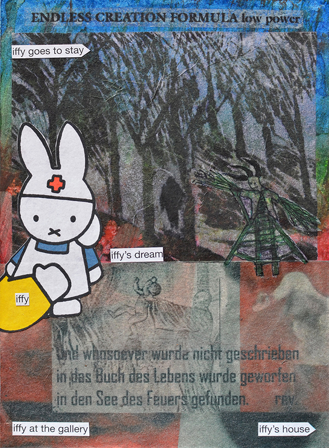 While I strove to - or planned to limit collage at some points, at others it was a trip through old files, slapping down oft reused images or ones which had been filed and unused for years. They are messy, frustrated, gleeful escapism of a sort. A “documentation” of avoidance of bringing the planned trio of screen frame collages to fruition - as of this writing, only one - “North Spirit Redux” is complete, and my dissatisfaction with it can be read throughout the Watercurtain series.