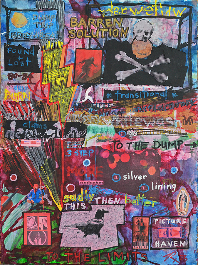 This began as a gluing test canvas for various paper types I was using for “F+L ‘86” and “Absolute Dissolution”. F+L '86 is down below at the end of my 2024 update, and this is the end of my 2025 update - in the Mixed Media section... there is more info in the updates to the Prints + Photos section, including the addition of the "100 Days Black and Furious" document from 2006, appended to the MOVE section. 100 Days Black was the finale of a set of mail art responses to the MOVE document.